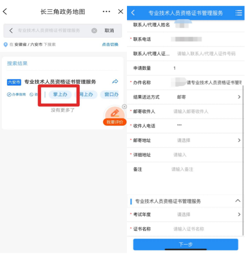1.网申邮寄??忌略赝钍峦ˋPP,进入“长三角政务服务地图”,搜索事项“专业技术人员资格证书管理服务”,选择“邮寄”结果送达方式,提供准确的寄送地址及联系电话,填写考试年度和证书名称。系统审核后通过中国邮政速递免费寄送证书,证书仅支持本人当面签收。操作步骤请查看附件:皖事通App网申邮寄证书操作指南。