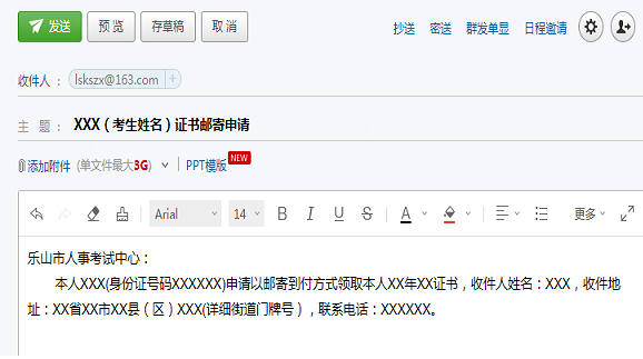如需邮寄领取,请将本人手持身份证照片及领证申请发送至乐山市人事考试中心电子邮箱,并来电告知申请办理。