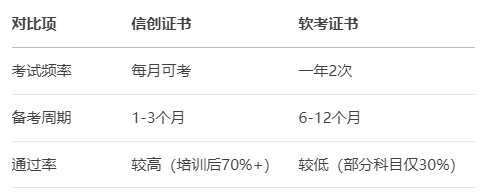 结论:想快速拿证选信创,不着急且求长期价值选软考。