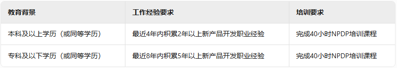 NPDP的报考门槛兼顾学历与经验,考生需满足以下任一组合条件(教育背景+工作经验+培训课时):