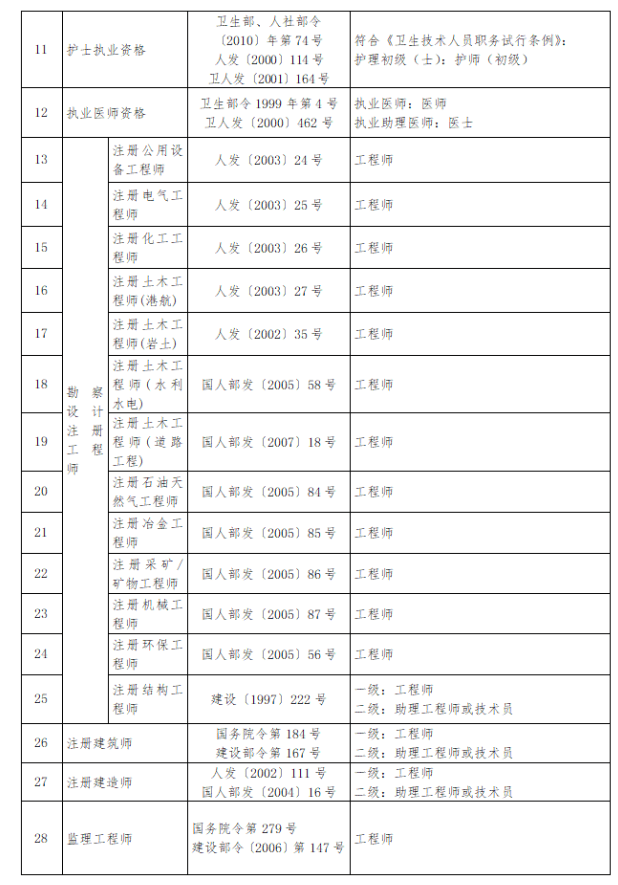 关于建立部分专业技术职业资格和职称对应关系的通知