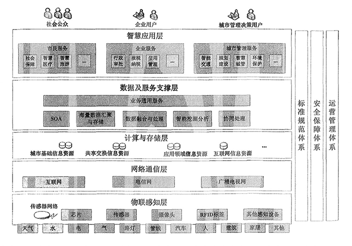 中级教程第二版P100:如下图智慧城市建设参考模型。
